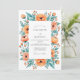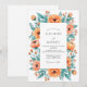 This design features a vibrant watercolor arrangement of tangerine orange poppies and delicate blossoms. The warm floral tones are beautifully contrasted by lush teal and sage green foliage, creating a spirited and romantic atmosphere. Perfect for a seasonal outdoor ceremony, the artwork evokes a sense of natural beauty and artistic flair.