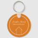This cute orange realtor keychain is custom made with your realty company name under the the agent name in chic typography. This minimalist real estate company key chain feature a simple line drawing of a house. Contemporary gift for an agent working to help you buy a home.