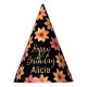 Elevate your birthday celebration with our unique Orange Red Autumn Flower Black Birthday Party Hat. Featuring a beautiful pattern of orange and red autumn blooms on a black canvas, this hat is a fun, fashionable way to bring the warmth of fall to your birthday party. The comfortable fit and quality materials make this hat not just stylish, but also durable and comfortable to wear. Step into your new age with style and let the party begin!