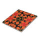 This ceramic tile is a beautiful blend of traditional aesthetics and contemporary design elements. The base colour is a warm and inviting shade of orange, which serves as the backdrop for an intricate pattern rendered in bold black and red hues. At the centre of the tile lies a symmetrical floral motif, surrounded by an array of shapes that echo elements of classic mandala designs. Each detail is meticulously crafted, contributing to a visual spectacle that is both harmonious and dynamic.