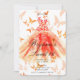 Orange Red Butterfly Dance Dress Sweet 16 Party Invitation