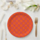 Orange Red Chequered Classic Retro Check Pattern Paper Plate