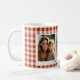 Custom 3 Photo Mug, Orange-Red Gingham Pattern Design - 6 colours.