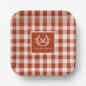 Custom Monogram Paper Plates Orange-Red Gingham Pattern Design - 6 colours.