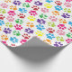 Orange Red Lime Green Turquoise Blue Paw Prints Wrapping Paper