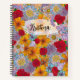 This customisable notebook is a true work of art, a perfect blend of functionality and personal expression. The cover is a tapestry of vivid colours, featuring a floral design that captures the eye with its radiant red roses and delicate blue blossoms. Each flower is rendered with exquisite detail, inviting the viewer into a garden of creativity.