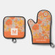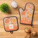 Orange Retro Flower Pattern Oven Mitt & Pot Holder Set