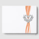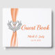 Elegant orange ribbon and silver swans decorate this guestbook. Wedding guest books are fun for both the couple and their celebrants. Invite attendees to leave you well-wishes at your reception, and you're guaranteed to have a keepsake to look back on for years to come. Plus, your guests will get to leave their mark on your event, not to mention put in writing whatever they didn't have a chance to express in person on the big day. Personalise the book by changing the text in the fields provided. You can change font style, size, and colour.