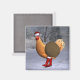father christmas got a cute chicken as helper this year - happily marching with red boots and hat through the snow at winter time