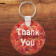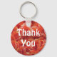 Beautiful orange roses in full bloom appear on this inexpensive appreciation keychain. The large flowers appear together in a large display of their circular petals. "Thank You" can easily be customised if you desire.
