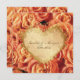 Lovely lush profusion of Orange roses designed on custom Formal Wedding Invitations. This floral design has an elegant gold heart banner on card front to frame your names and wedding date. Design is available in several colours. These wedding invitations will add a unique touch to your wedding theme. All text on invitation front and back is ready for you to customise with your information.