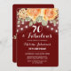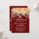 Elegant floral birthday invitation features stunning watercolor orange roses bouquet with string lights on burgundy back drop.