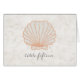 Perfect for a nautical themed wedding is this Rustic Seashell Wedding Table Number Card with an orange seashell on a light beige marble look background. This classic and simple beach wedding table card is easy to customise with your wedding details. Find more personalisation options by clicking Customise.