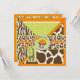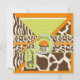 Safari prints, giraffe, zebra, and cheetah and a polka dot pattern, with novelty cupcake and 3D look tags, bows, trims first birthday invitation card.