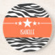 Trendy and modern Sassy Star Zebra Sandstone Coaster featuring a chic black and white zebra print background and a bold orange border adorned with a fun star motif. This girly design may be customised with the personalised text of your choosing. Click "Customise It" to find more personalisation options.