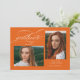 Orange Elegant Script QR Code 3 Photo Graduation Party Invitation features a beautiful and elegant script overlaying your photo. Your party details and photo are on the back, along with a QR code for your graduate's wish list.
