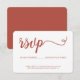 The orange script font adds a touch of warmth and modernity to the card, while the white background keeps the design classic and chic. This combination creates an aesthetically pleasing and eye-catching RSVP card that will surely make an impression on your guests.