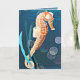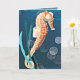 This colorful greeting card features my design of an orange Seahorse tethered to weeds against a blue ocean background.