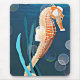Orange Seahorse against the sea with bubbles Mouse Pad