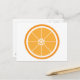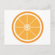 A simple but cute design of an orange fruit slice done in white and orange on a postcard.