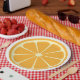 Part of the vintage kitchen pattern, this paper plate design features an orange slice. Fresh and modern look is great for summer picnics or backyard bbqs!