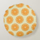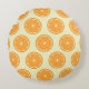 Orange Slice Pattern Round Throw Pillow - A seamless design featuring vibrant orange slices arranged on a light background. The playful citrus-inspired artwork exudes freshness and cheer, perfect for adding a pop of colour to your creative or organisational space.