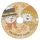 Pretty and colourful Orange Snowflakes and Snowmen personalised holiday tree skirt features a pale orange with white snowflakes background, bigger orange snowflakes, a cute snowman and snow lady couple wearing hats and scarves, and a text area that you can easily personalise with your name or other text! This beautiful Christmas holiday tree skirt makes a great gift or get one for yourself to enjoy for years to come!