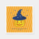 Orange Sparkly Stripes Halloween Pumpkin Wearing Blue Witch Hat Filled With White Sparkly Stars and Blue Flying Bats Party Napkins.