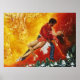 In this refreshing painting we see the lively splash of ice cubes and the slow mixing of the orange drink into perhaps an effervescent cola. The dancers appear to float in a romantic embrace over the surface in harmony with the blending colour. Orange blossoms grace both the lady and the foreground.