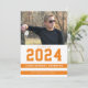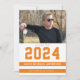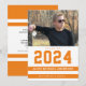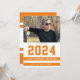 This colourful photo graduation party invitation features a horizontal photo and is accented with sporty orange and white stripes. The graduating year appears large above the graduate's name.