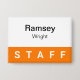Orange Staff Pinback Badge Button Employee Nametag