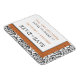 Trendy and modern premium Save the Date magnet. Features an orange stitched design/illustration over a black and white damask pattern. This magnet is flat and can fit in an envelope (not included).