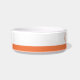 Personalised pet food or water bowl with your cat or dog name in orange with a simple modern stripe.