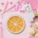 Paper plate as a modern, stylized slice of an orange, with detailed and textured segments - an original tropical fruit illustration created in Photoshop and Adobe Illustrator