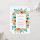 Vibrant orange poppies and stylized teal flowers create a striking watercolor arrangement. Lush green and blue foliage surrounds the central area, providing a fresh and breezy summer aesthetic. This botanical design features a warm and cool color palette, perfect for an artistic outdoor ceremony. The soft petal textures and detailed leaves offer an elegant and cheerful mood.
