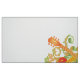 Fantastical music image of two orange coloured guitars crossed over an abstract floral background. Perfect for music lovers, and guitar players of all ages.