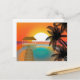 Orange Sunset on Beach with Palm Trees Drawing Postcard