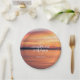 Orange Sunset Over Lake Couple's Names Wedding Paper Plate