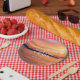 A sunset photo by Destei with warm orange and purple tones creating a romantic and serene atmosphere. Perfect for adding a beautiful, nature-inspired touch to wedding receptions, engagement parties or special celebrations. A great way to bring the magic of a lakeside sunset to your event tableware.