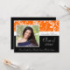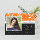 Graduation Invitations with photo and Classy orange, Black and White Design with flowers and flowing swirly vines. Cute, chic, delicate and feminine style for any girl or female graduate. Show your personal style with this beautiful photo grad invite. Great as a graduation announcement or graduation party invitation.