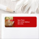 Orange tabby kitty cat waits patiently next to Christmas presents photo Christmas return address label