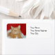 Orange tabby cat in white Christmas garland with a red background photo Christmas return address label