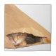 Orange tabby kitty cat looks out from the old favourite toy the brown paper bag photo ceramic tile