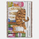 Orange tabby cat sitting on a counter top in the kitchen. The cat thinks it is funny you want him off the counter. Books, cookies, plant, and utensils are all around the cat on the counter in a backdrop of purple.