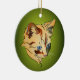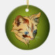 This Christmas ornament features the portrait of an adorable orange tabby kitten with soulful blue eyes set against a seasonal green background. Text on the reverse is easy to customise.