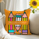 Orange Teacher Colourful Pencil Name Throw Pillow