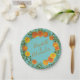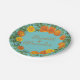 Orange Teal Aqua Peony & Rose Floral Wedding Paper Plate