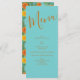 Orange & Teal Aqua Peony & Rose Wedding Menu