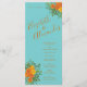 Orange Teal Aqua Peony Rose Wedding Programs Menu