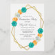 Orange ranunculus, white rose and teal floral graduation design on a geometric frame